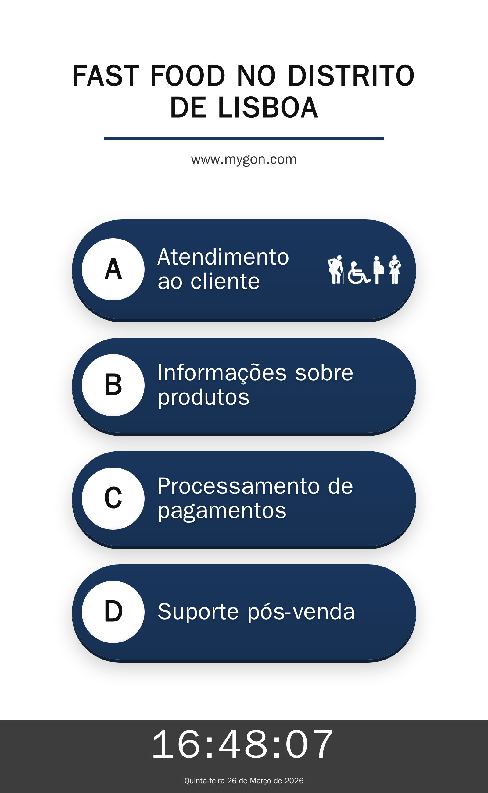 Exemplos visuais preparados para Fast Food no Distrito de Lisboa